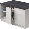 Erlebe das Kochvergnügen auf einem neuen Level mit der Kücheninsel »KS-Sole« der Marke KOCHSTATION. Im trendigen, modernen Design fügt sich dieses Möbelstück harmonisch in jede Küchenlandschaft ein und bietet dabei noch eine Vielzahl an praktischen Vorteilen. Die Küche kombiniert auf einzigartige Weise Ästhetik und Funktionalität. Ausgestattet ist die praktische Inselküche mit einem Apothekerauszug. Dieser stellt durch seine Ablagen genügend Raum zur Unterbringung deiner Flaschen und Gewürze bereit. Somit sind deine wichtigen Küchenutensilien stets griffbereit und ordentlich verstaut. Die unkomplizierte Handhabung wird durch die leise Soft-Close-Funktion der Türen optimal unterstützt. Diese ermöglichen ein sanftes und geräuschloses Schließen. Auf der großzügigen Tischplatte kannst du nicht nur kulinarischen Meisterwerke zubereiten, sie dient zudem als idealer Platz für gemeinsame Mahlzeiten oder als zusätzliche Arbeitsfläche.