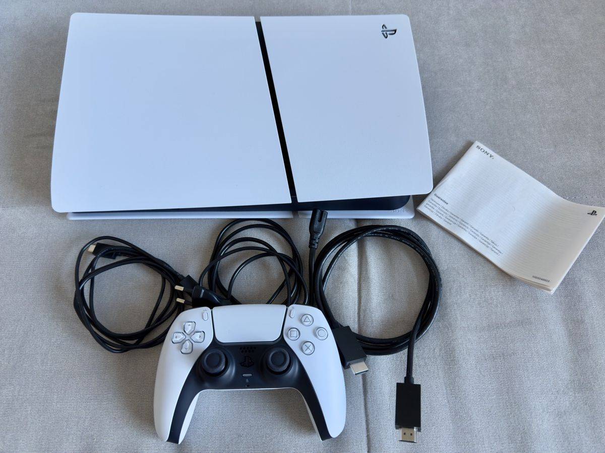 Ich verkaufe meine PS5, da der Käufer leider zwei zu Weihnachten bekommen hat. Ich habe sie zwar selbst ausprobiert, aber Videospiele sind nicht so mein Ding. PS5 Slim Digital Edition (ohne Laufwerk), gekauft im November 2025, mit Garantie bis November 2027 (siehe Fotos). Originalverpackung vorhanden; beim Testen wurden nur wenige Plastikteile entfernt.