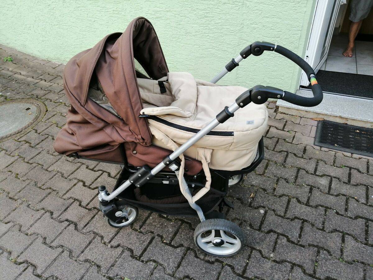 Teutonia kinderwagen gebraucht. Zustand: Gebraucht. Super Wagen, voll funktionsfähig, feststellbar Schwenkräder, Aufsatz kann in beide Richtungen gedreht werden, UV 50 Sonnenschutz, Harttasche, hat Gebrauchsspuren die Repariert, geflickt wurden am Buggysitzpolster siehe Herzchen und an der Wickeltasche siehe Bilder. Das Gestell ist an manchen Stellen zerkratzt. Dabei ist die Wickeltasche, Sonnenschutz, Sonnenschirm, Regenschutz, nur an Selbstabholer